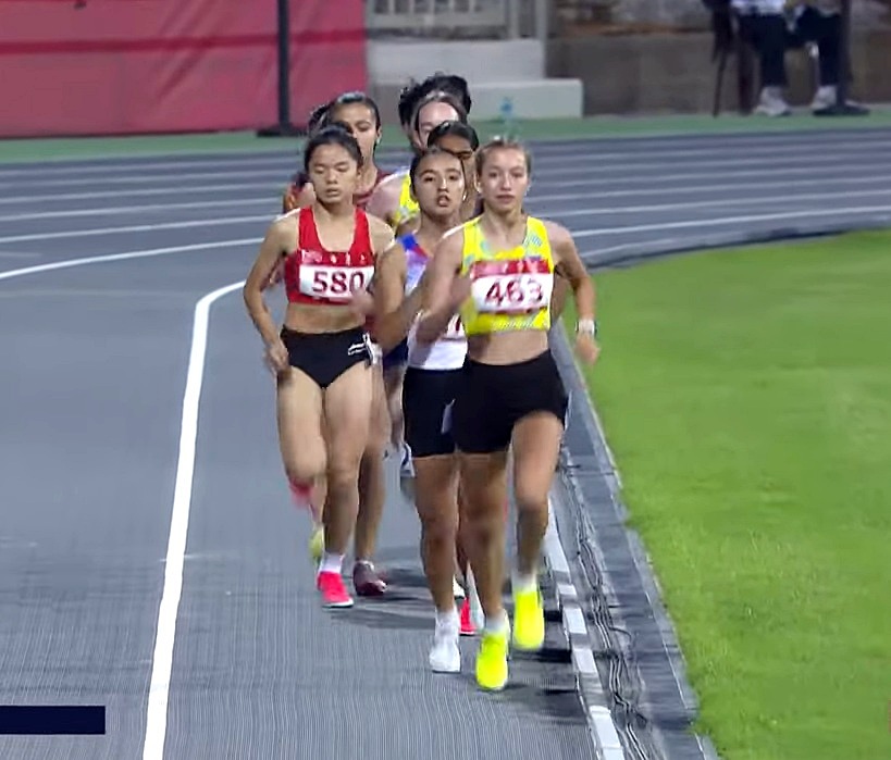 Dù thông số thành tích trước khi xuất phát chỉ xếp thứ 6/8 VĐV tham gia chạy chung kết, Quỳnh Như đã có phần thi khá nỗ lực. Chân chạy sinh năm 2010 đeo bám tốt nhóm VĐV dẫn đầu đến từ Trung Á và đặc biệt là đối thủ mạnh người Sri Lanka.