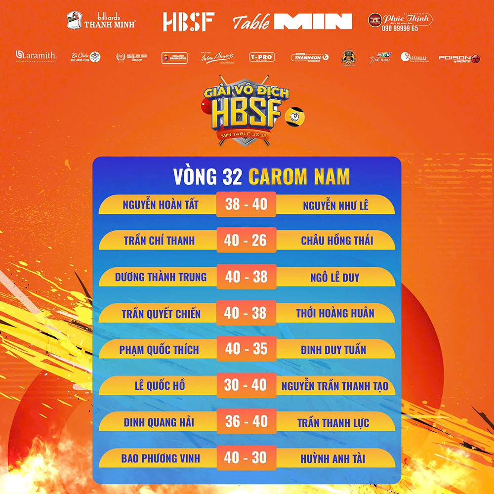 Vòng 32 cũng chứng kiến cú sốc lớn khi Chiêm Hồng Thái, một trong những cơ thủ tài năng, đã bị loại sau khi để thua Võ Quốc Thắng với tỉ số 28-40 sau 35 lượt cơ. Các tay cơ khác đã thành công đi tiếp vào vòng 16 gồm: Nguyễn Trần Thanh Tạo, Nguyễn Như Lê, Nguyễn Chí Long, Nguyễn Trần Thanh Tự, Nguyễn Nhất Hòa và Trần Chí Thanh.