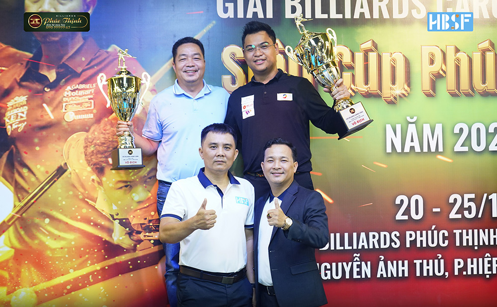 Sau 6 ngày tranh tài hấp dẫn, những cơ thủ xuất sắc nhất giải billiards carom 3 băng Cúp Phúc Thịnh năm 2025 (hay gọi là Siêu Cúp Phúc Thịnh 2025) chính thức lộ diện. Giải đấu do Hệ thống Billiards Phúc Thịnh phối hợp Liên đoàn Billiards & Snooker TP.HCM (HBSF) tổ chức. Ở lượt trận chung kết diễn ra chiều ngày 25/10 tại CLB Phúc Thịnh – Chi nhánh 7 (517 Nguyễn Ảnh Thủ, Phường Hiệp Thành, TP.HCM) chứng kiến màn so tài giữa cơ thủ Nguyễn Trần Thanh Tạo và Đinh Quang Hải.