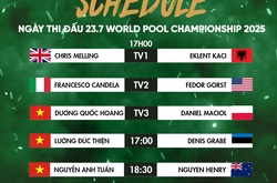 Cập nhật lịch thi đấu Giải Vô địch 9 bi thế giới 2025 hôm nay mới nhất. Ngày thi đấu 22/7 giải World Pool Championship 2025 chứng kiến Phạm Phương Nam, Nguyễn Anh Tuấn, Bùi Trường An có trận đầu tiên.