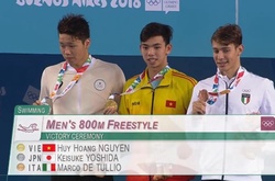 Bơi Việt Nam khép lại SEA Games 29 với tấm HCV 1.500m tự do, và thật sự xúc động khi 2 kình ngư Huy Hoàng và Quang Nhật khoác vai nhau hát quốc ca đầy cảm xúc.