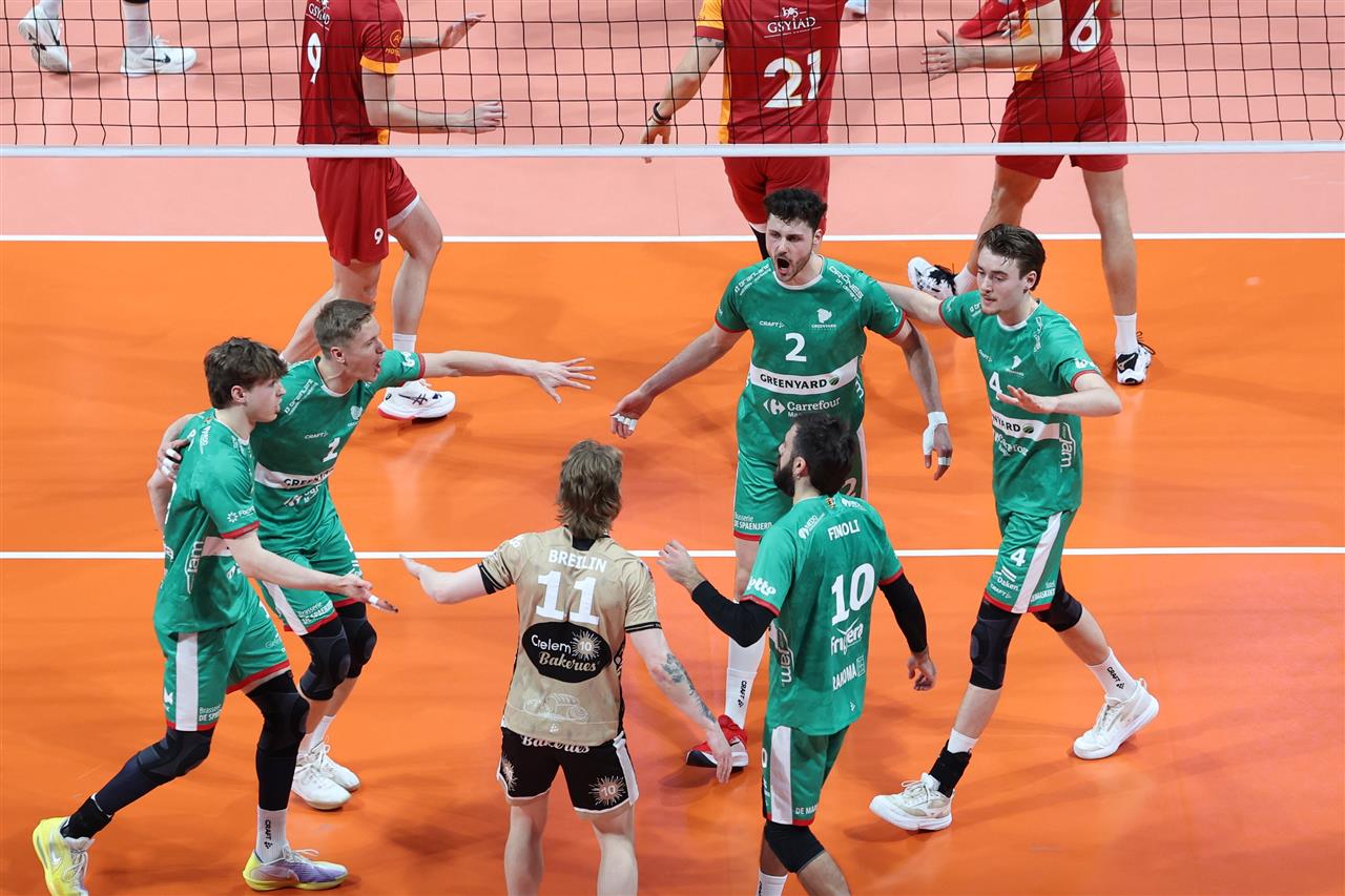 Trận đấu chứng kiến màn rượt đuổi tỷ số căng thẳng từ đầu đến cuối trước khi đại diện của Bỉ giành lợi thế nhỏ trước trận lượt về. Ngay trong set mở màn, hai đội liên tục bám đuổi từng điểm số. Greenyard Maaseik tỏ ra bản lĩnh hơn ở những pha bóng quyết định để khép lại set đấu với chiến thắng 25-23.