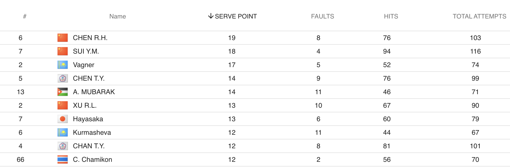 Khả năng phát bóng đa dạng, chính xác và mạnh mẽ của các VĐV Trung Quốc đã tạo ra áp lực lớn lên đối phương, nhiều lần giúp đội tuyển phá vỡ chiến thuật phòng thủ và tạo điều kiện cho các pha tấn công hiệu quả. Đây cũng là yếu tố quan trọng giúp đội bóng duy trì lợi thế trong nhiều trận đấu, mặc dù họ không giành chức vô địch.