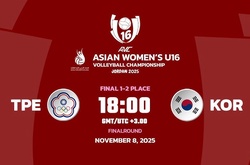 Cập nhật lịch thi đấu các trận giải bóng chuyền nữ U16 vô địch châu Á ngày 8/9 tâm điểm là trận đấu chung kết giữa Hàn Quốc và Đài Bắc Trung Hoa.