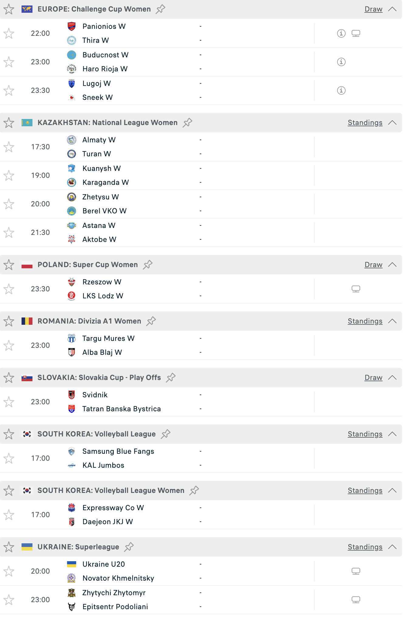 Bên cạnh Challenge Cup, các sân chơi lớn của lục địa già như CEV Cup, Champions League vòng phân hạng, cùng các giải VĐQG tại Ba Lan, Slovakia, Romania, Ukraine hay Hàn Quốc.