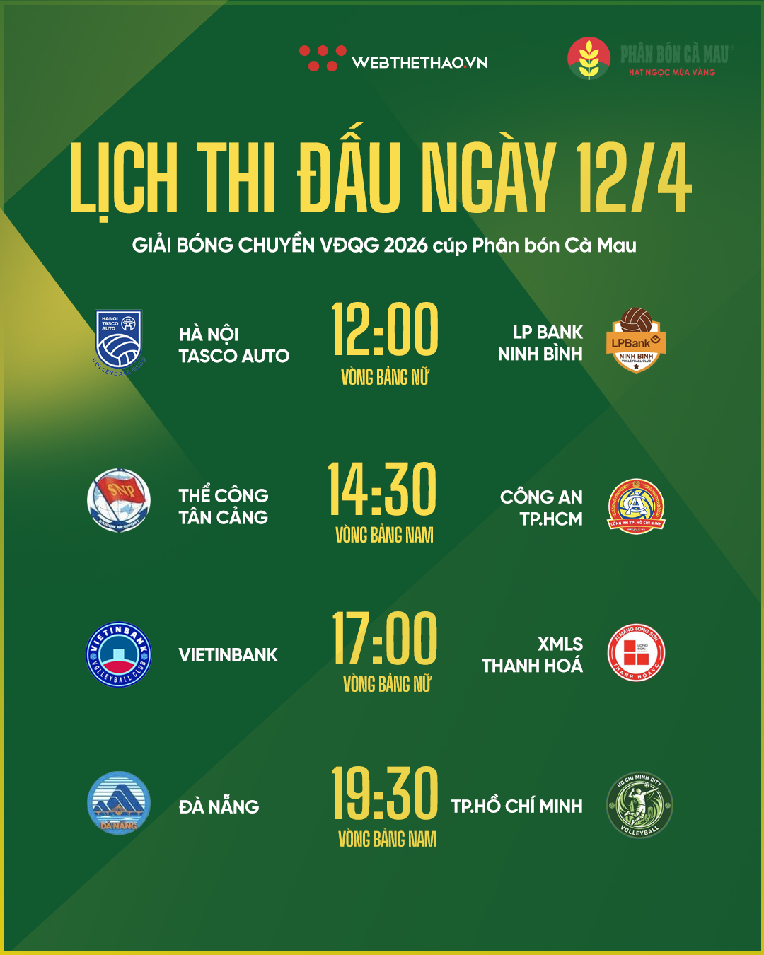 Với hàng loạt cặp đấu cân tài cân sức, ngày 12/4 hứa hẹn sẽ mang đến những màn so tài hấp dẫn và giàu cảm xúc cho người hâm mộ.
