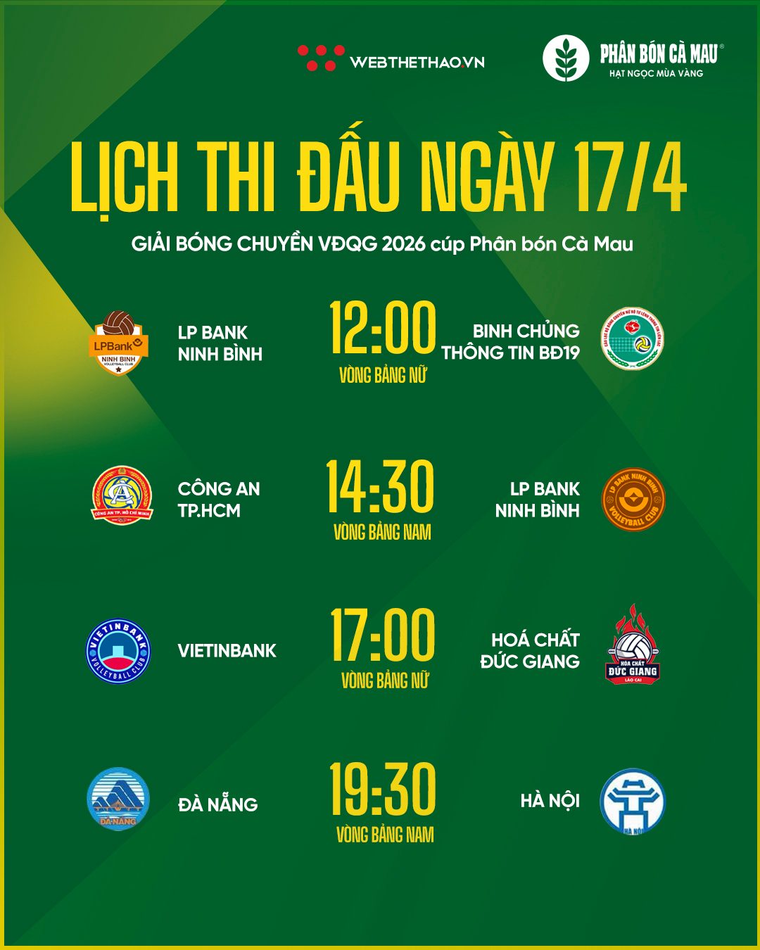 Cập nhật link trực tiếp giải bóng chuyền VĐQG 2026 hôm nay, trận đấu giữa Hà Nội vs Đà Nẵng diễn ra lúc 19h30 ngày 17/4.