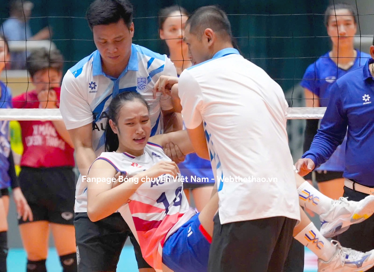 Tình huống diễn ra ngay đầu set 2. Sau một pha bật nhảy tham gia tấn công, Thuỳ Linh tiếp đất không tốt và bị lật cổ chân khá nặng. Cô lập tức ôm chân đau đớn, không thể tiếp tục thi đấu. Các đồng đội và ban huấn luyện nhanh chóng có mặt, nhưng biểu cảm của VĐV sinh năm 2009 khiến tất cả không khỏi lo lắng.
