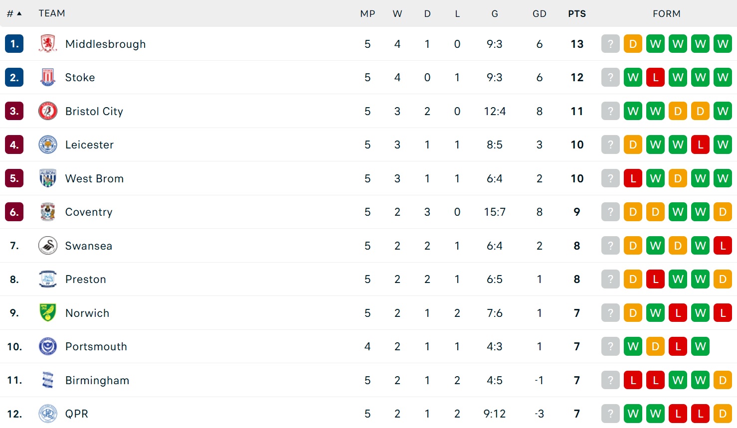 Bảng xếp hạng Championship 2025/26 (liên tục cập nhật)