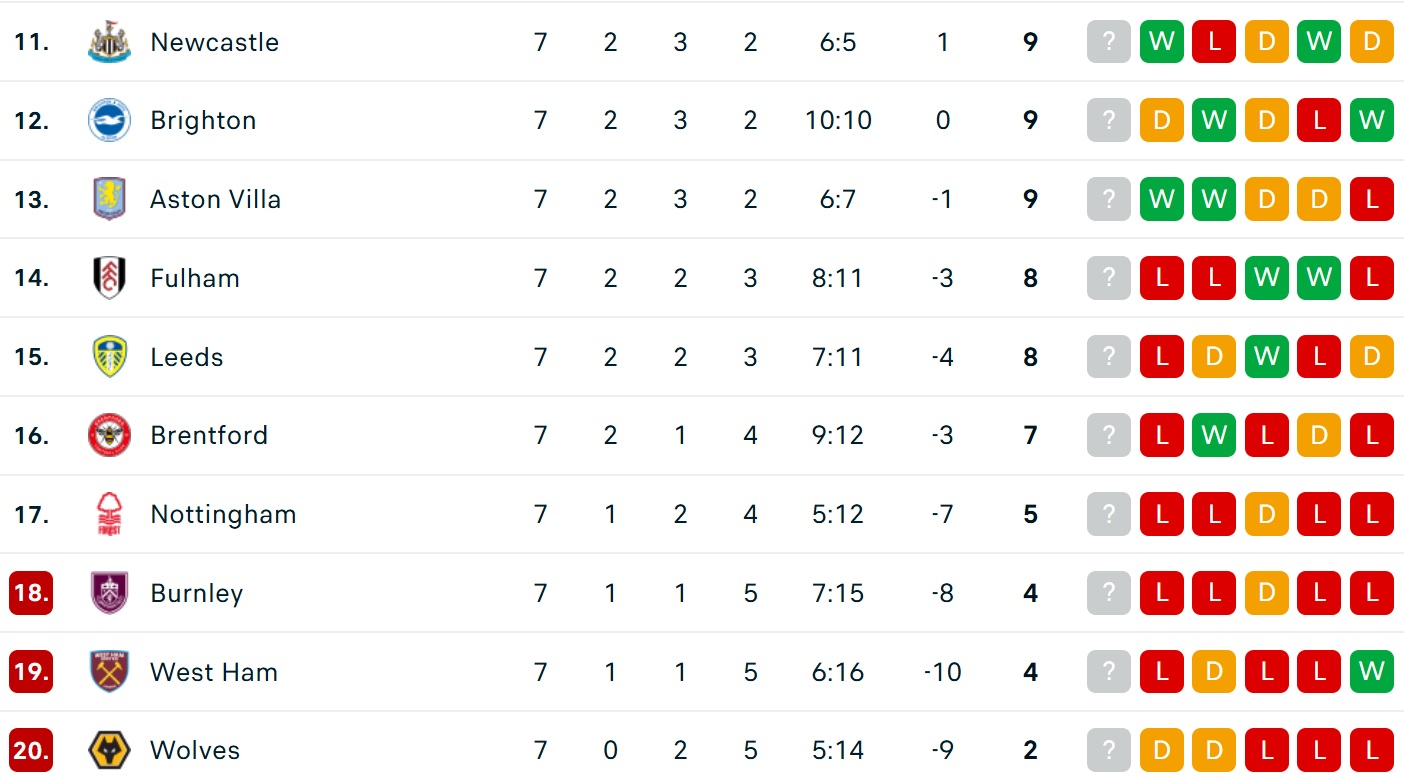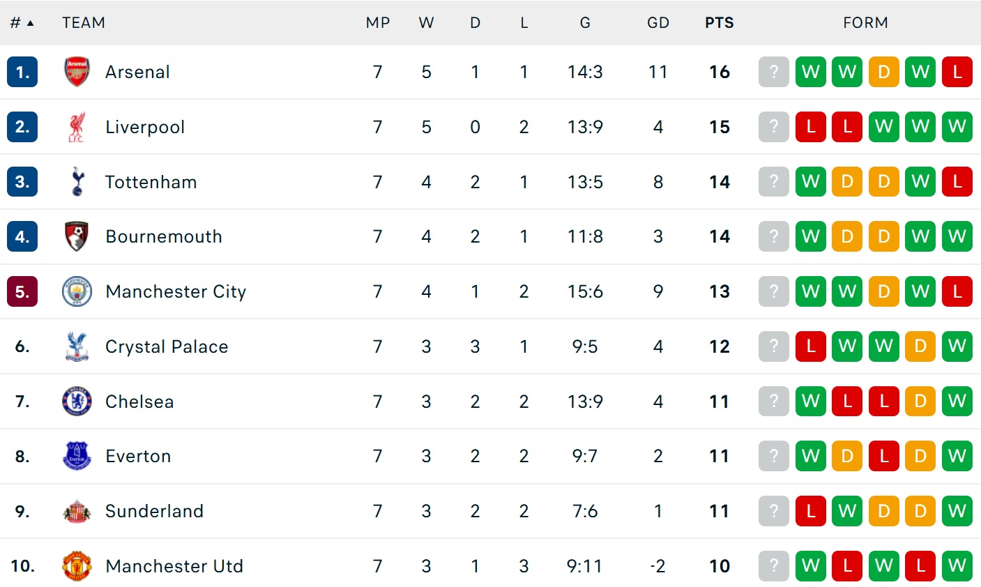 Bảng xếp hạng Ngoại hạng Anh mới nhất