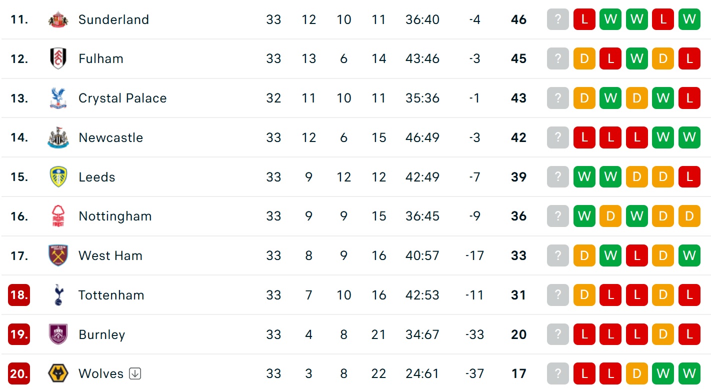 Trận hòa của West Ham trước Crystal Palace đã chính thức khép lại hành trình của Wolves tại giải đấu cao nhất xứ sở sương mù khi mùa giải vẫn còn 5 vòng đấu.