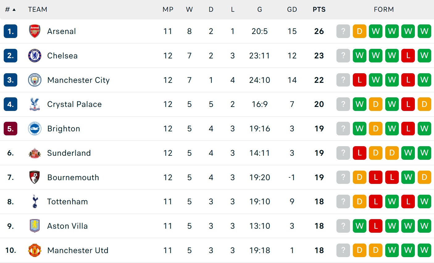 Bảng xếp hạng Ngoại hạng Anh 2025/26