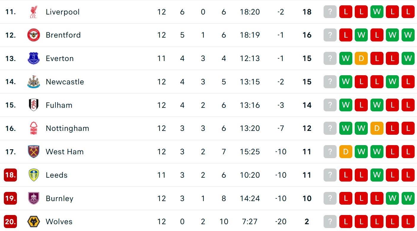 Trong khi đó, Liverpool vẫn tiếp tục chìm trong khủng hoảng bằng thất bại nặng nề 0-3 trước Nottingham trên sân nhà. Trận thua thứ 6 từ đầu mùa này khiến thầy trò Slot tụt xuống nửa cuối bảng xếp hạng (11).