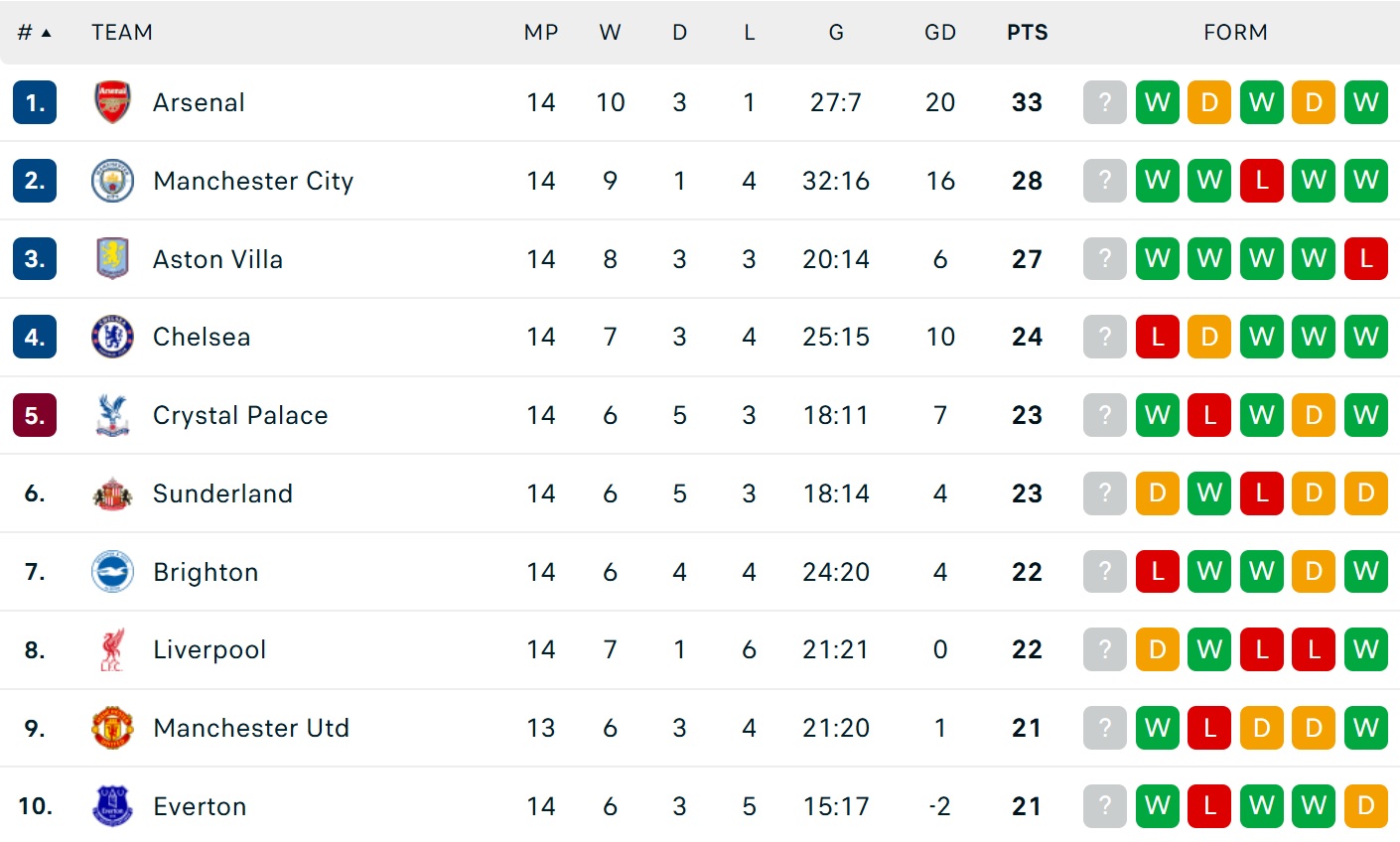 Bảng xếp hạng Ngoại hạng Anh 2025/26