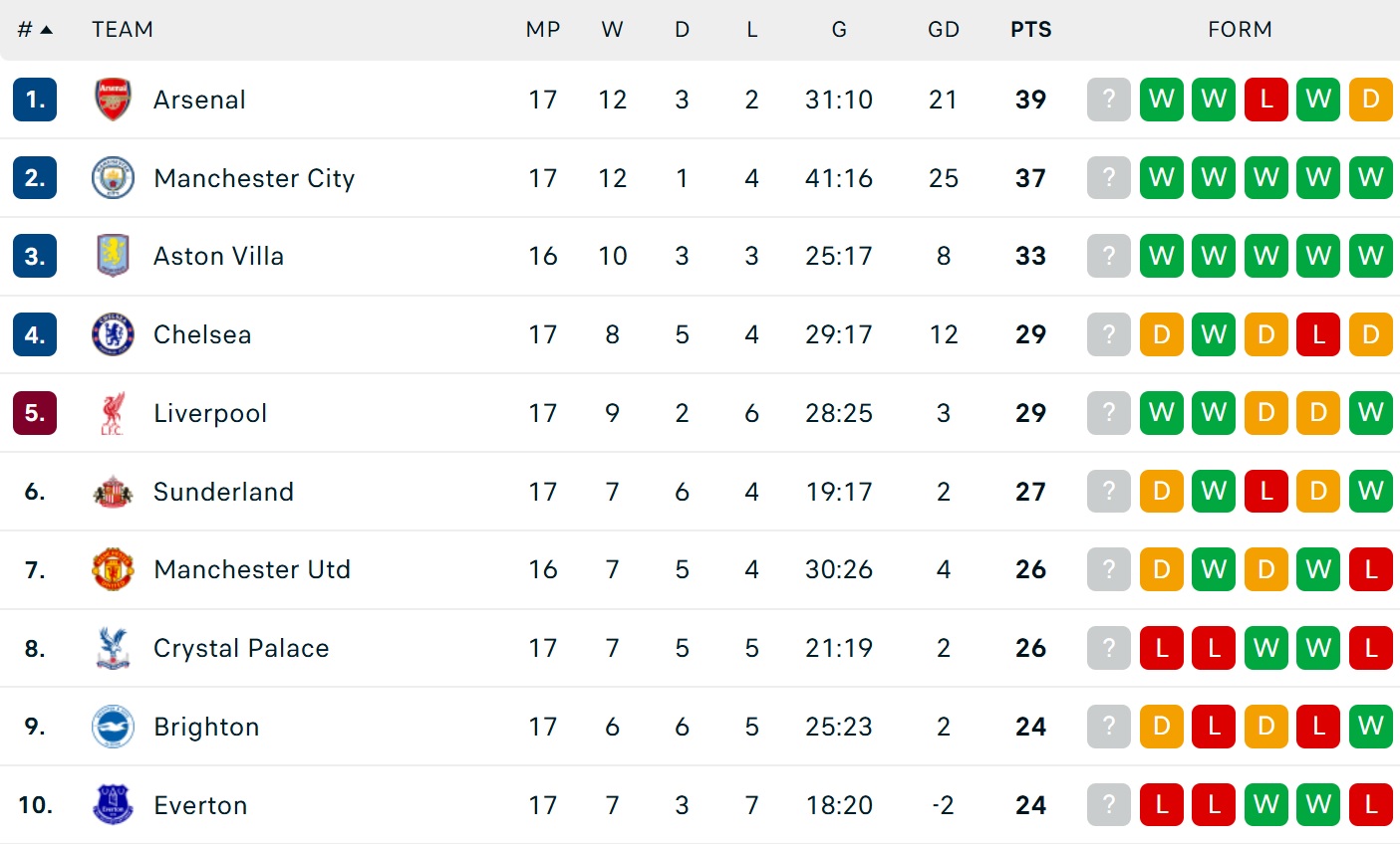 Trong khi Arsenal củng cố vững chắc ngôi đầu bảng thì Liverpool cũng tiếp tục giành chiến thắng để cải thiện vị trí trên bảng xếp hạng.