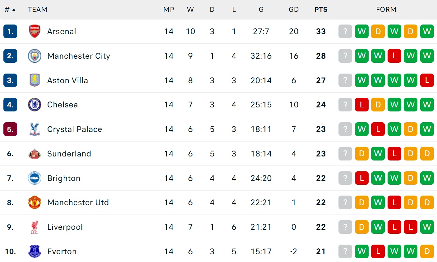 Bảng xếp hạng Ngoại hạng Anh 2025/26
