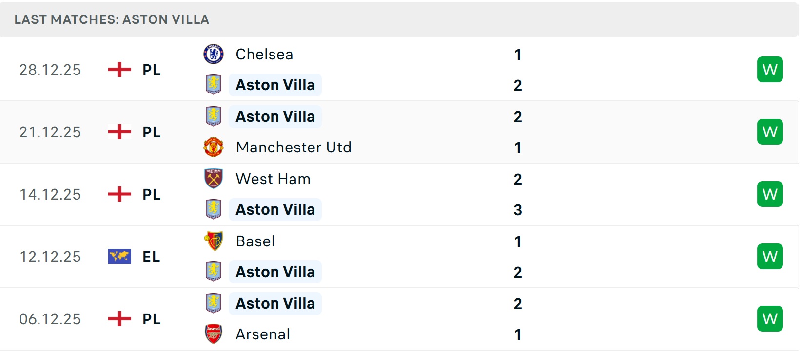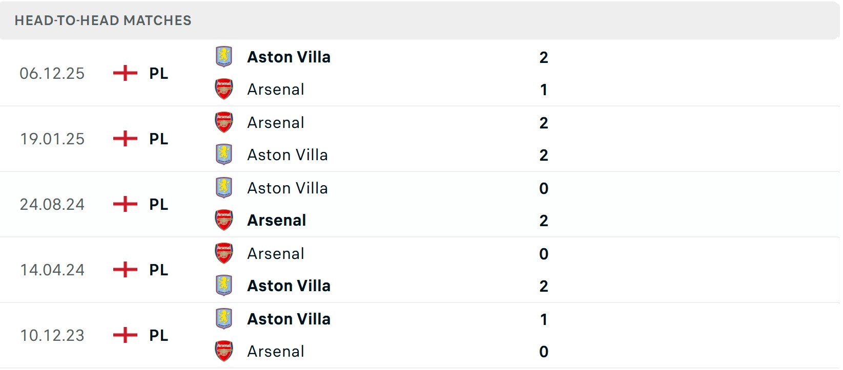 Tổng bàn thắng cả trận: Hai cuộc đối đầu trước đó giữa hai đội vượt mốc tổng bàn thắng, tương tự là 5/6 trận gần đây của Aston Villa và 2/3 trận của Arsenal.