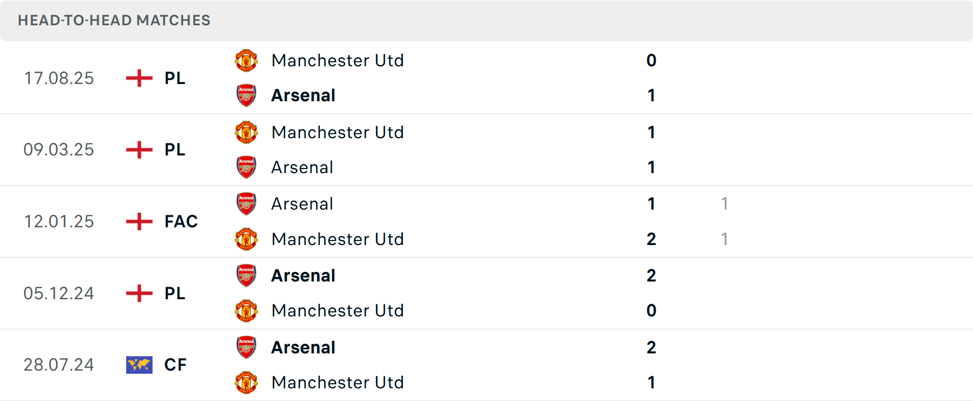Tỷ lệ trận đấu: Arsenal thua MU 2/3 cuộc đối đầu mới nhất theo tỷ số châu Á. Arsenal thua cả 2 trận mới nhất ở Ngoại hạng Anh, chỉ thắng 2/8 trận gần đây. Về phần mình, MU vừa thắng trận mới nhất.