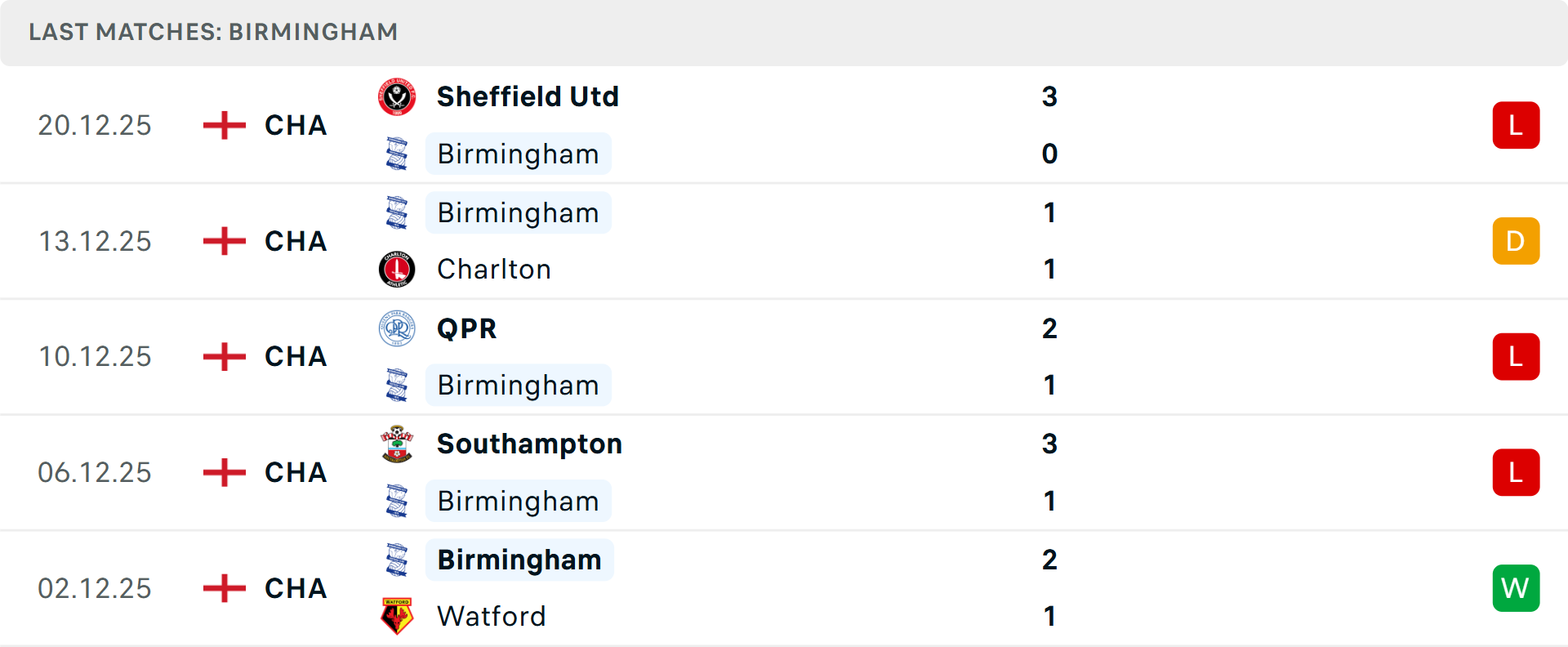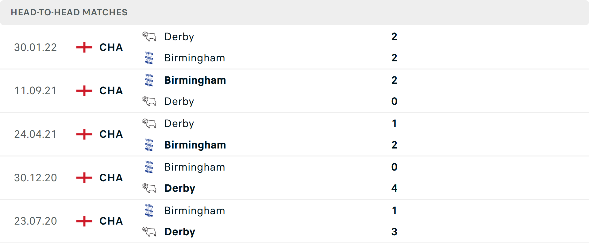 Dù Birmingham đang có chuỗi 5 trận bất bại trên sân nhà, nhưng trận hòa thất vọng trước Charlton cho thấy sự hụt hơi của họ. Với việc 8/10 trận gần nhất của Derby có trên 2 bàn thắng và cả hai đội đều có xu hướng cùng ghi bàn, kịch bản đội khách ra về với 3 điểm là rất khả thi.