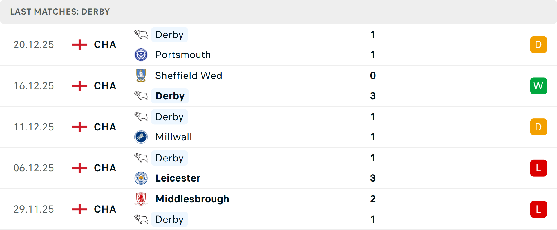 Ngược lại, Derby County dưới sự dẫn dắt của HLV John Eustace đang là "ông vua sân khách". Họ giành nhiều điểm nhất trên sân khách trong 8 vòng gần đây, với 4 chiến thắng trong 5 chuyến hành quân xa nhà mới nhất, bao gồm những trận thắng ấn tượng tại Sheffield.