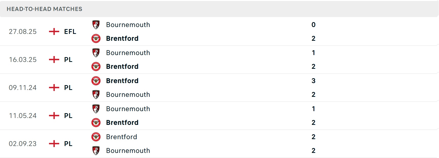 Brentford sẽ tiếp đón Bournemouth với mục tiêu kéo dài chuỗi thành tích ấn tượng trước đối thủ này. Hiện tại, "Bầy ong" đang nắm giữ lợi thế tâm lý lớn khi bất bại trong 8 lần đối đầu gần nhất, bao gồm chiến thắng 2-0 ngay trên sân khách hồi đầu mùa giải.