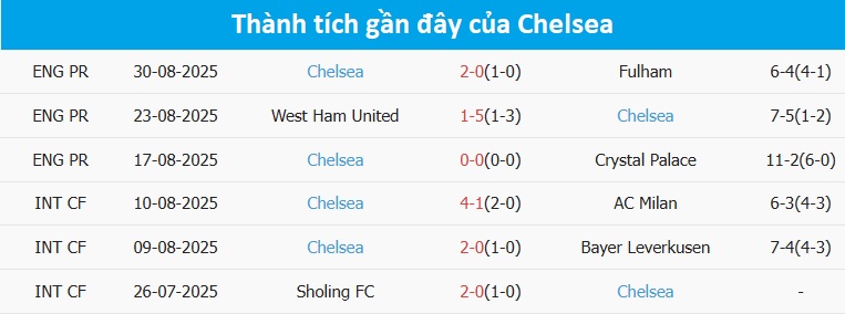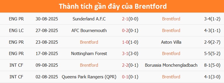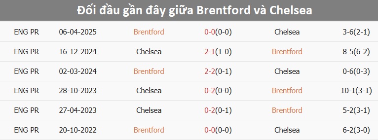 Tỷ lệ trận đấu: Brentford thua 2/3 trận ở Ngoại hạng Anh từ đầu mùa theo tỷ số châu Á. Về phần mình, Chelsea thắng 7/8 trận gần đây, gồm 2 trận mới nhất.