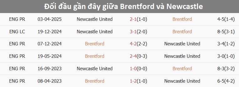 Tổng bàn thắng cả trận: 6/7 cuộc đối đầu trước đó giữa hai đội đều có từ 3 bàn trở lên. 6/10 trận gần đây của Brentford và 7/10 trận của Newcastle vượt mốc tổng bàn thắng.