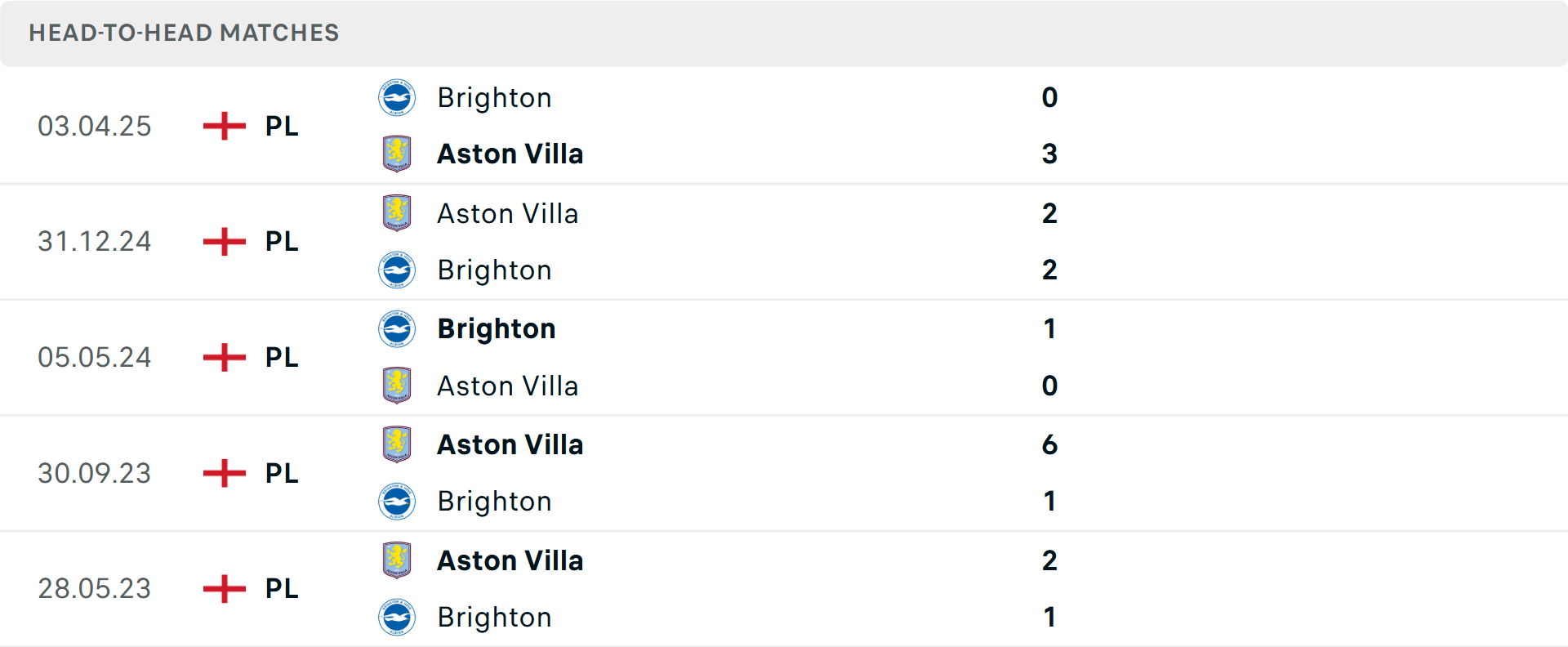 Về phía Aston Villa, đội bóng của Unai Emery cũng có phong độ cao với 5 chiến thắng liên tiếp trên mọi đấu trường, giúp họ vững vàng trong top 4. Dù đang có thành tích đối đầu gần đây tốt hơn (thắng 3/5 lần gặp Brighton gần nhất), Villa lại có kết quả sân khách không đồng đều ở mùa giải này.