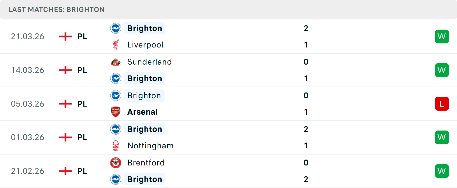 Trái ngược với sự bết bát của đội chủ nhà, Brighton đang bay cao với 4 chiến thắng trong 5 trận gần nhất, bao gồm cả việc quật ngã đương kim vô địch Liverpool. Lối chơi pressing tầm cao đầy khó chịu giúp đoàn quân của Fabian Hurzeler leo lên vị trí thứ 10 và thắp lại hy vọng giành vé dự cúp châu Âu.