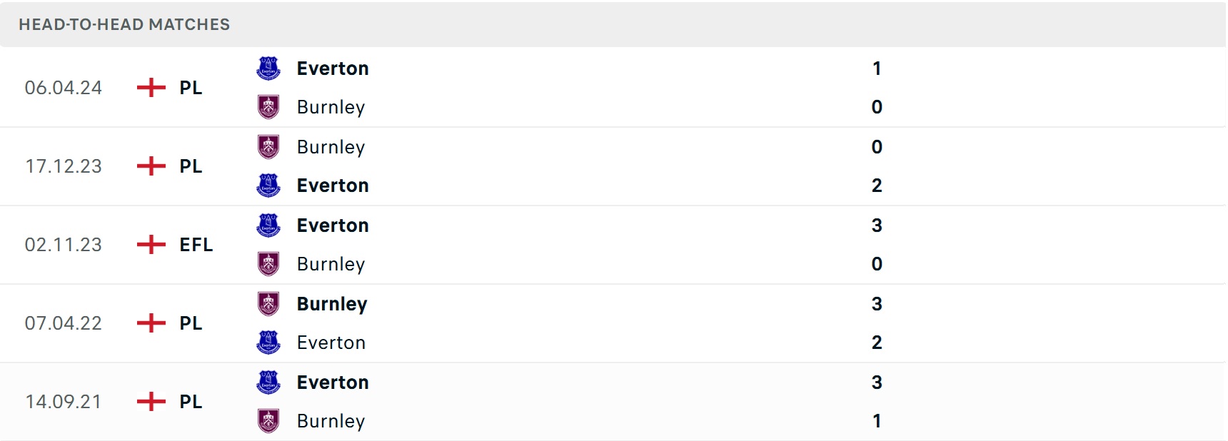 Tổng bàn thắng cả trận: Cả 2 cuộc đối đầu trước đó giữa hai đội đều dưới mốc tổng bàn thắng. Điều tương tự cũng xảy ra ở 2/4 trận vừa qua của Burnley và 7/10 trận gần đây của Everton.
