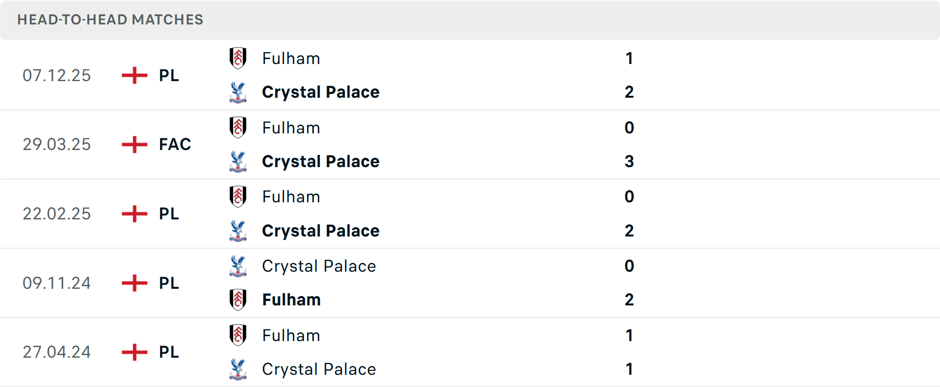 Crystal Palace sẽ tiếp đón Fulham với tâm thế đầy lo âu khi đang chìm trong khủng hoảng với 5 trận liên tiếp không biết mùi chiến thắng. Tại Selhurst Park, họ cũng chưa từng thắng từ đầu tháng 11, cho thấy lợi thế sân nhà đang dần biến mất.