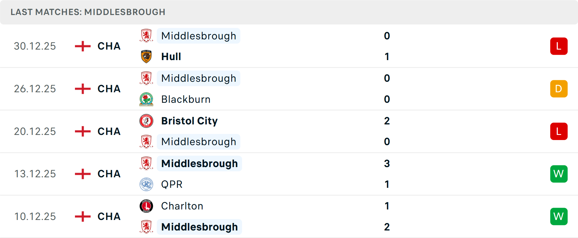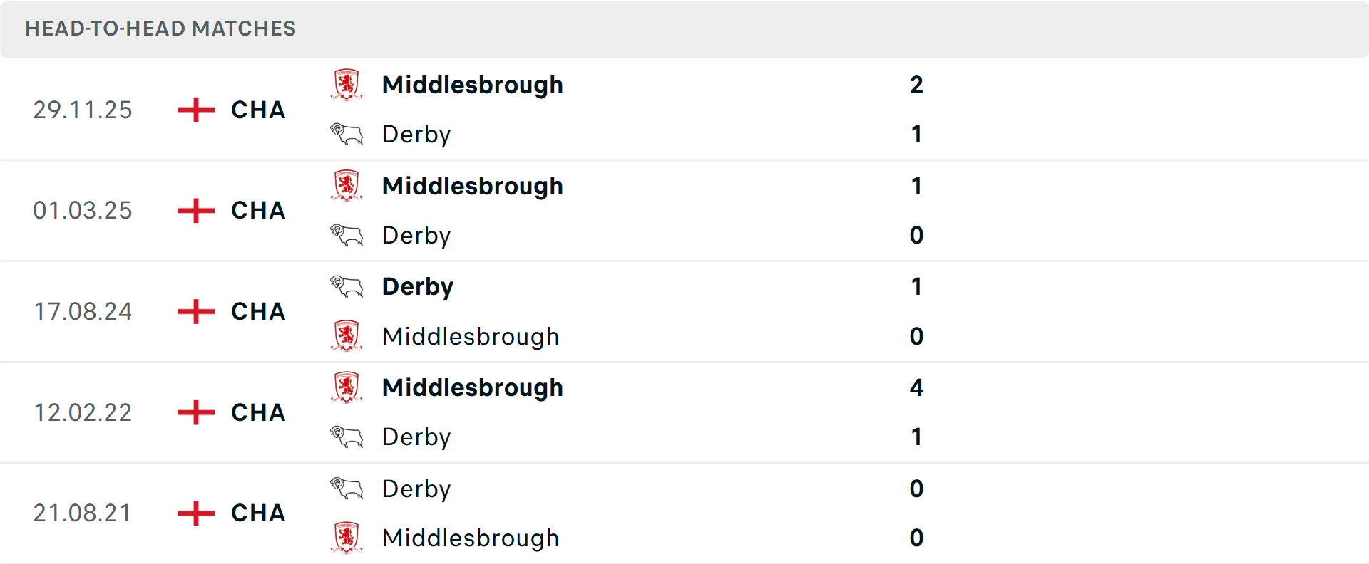 Dù Middlesbrough đang đứng thứ 2 trên bảng xếp hạng, cách Derby tới 12 bậc và 11 điểm, nhưng phong độ gần đây của đội khách khá thất thường với 3 thắng, 1 hòa và 2 thua trong 6 trận qua. Đặc biệt, Boro vừa thất thủ 0-1 trước Hull dù kiểm soát bóng áp đảo, cho thấy sự bế tắc trong khâu dứt điểm.