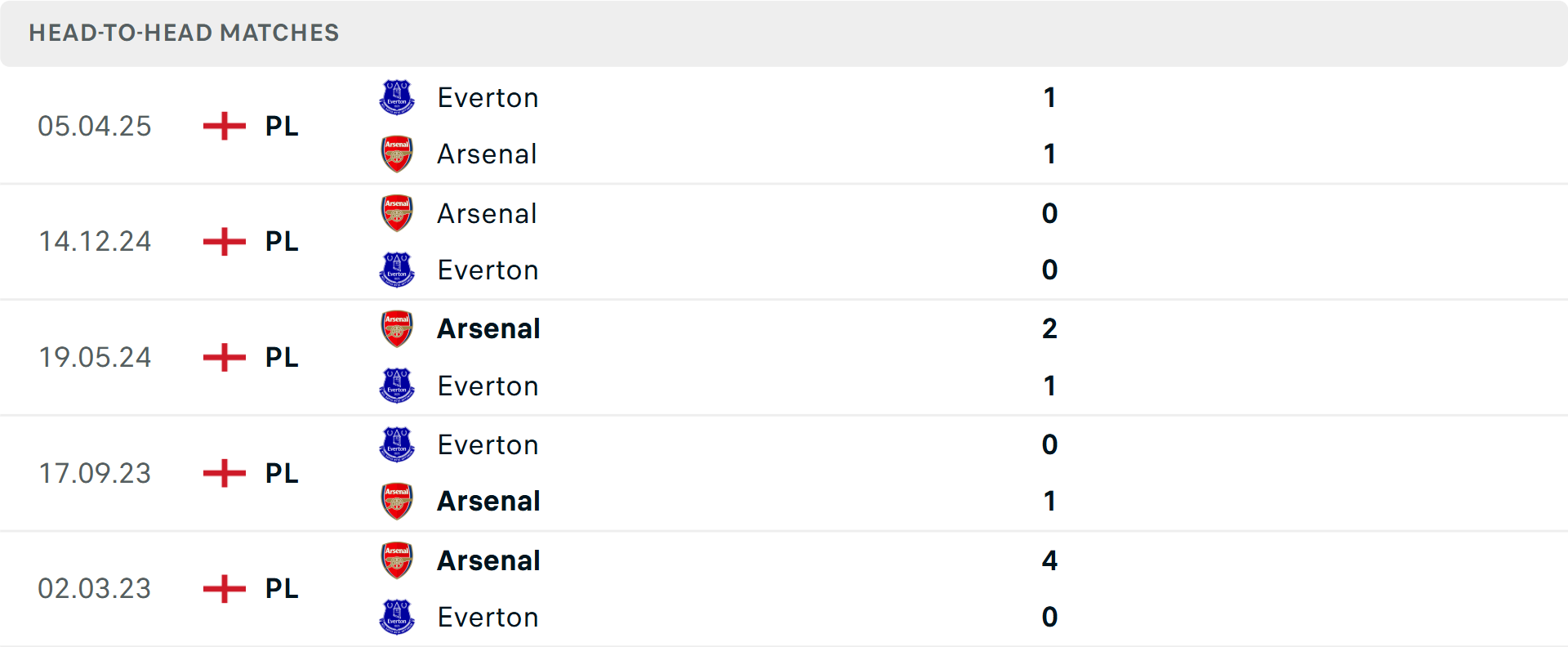 Tỷ lệ trận đấu: Everton toàn thắng Arsenal cả 3 cuộc đối đầu mới nhất theo tỷ số châu Á. Everton thắng 4/6 trận gần đây. Phía bên kia, Arsenal thua 3/5 trận vừa qua.