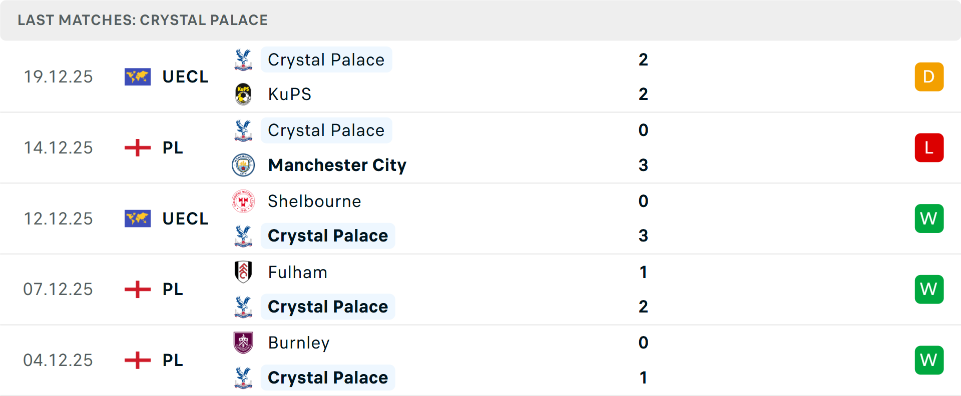 Trái ngược với chủ nhà, Crystal Palace đang gặp khó khăn về lịch thi đấu. Sau thất bại 0-3 trước Man City, đoàn quân của Oliver Glasner chỉ có vỏn vẹn một ngày nghỉ sau trận đấu tại Conference League vào thứ Năm. Dù đang đứng sát top 4, việc thiếu hụt kinh nghiệm của đội hình dự bị và thể lực suy giảm của các trụ cột sẽ là rào cản lớn cho "Đại bàng" tại Elland Road. Với lợi thế sân nhà và phong độ săn bàn ổn định, Leeds hoàn toàn có thể giành trọn 3 điểm.