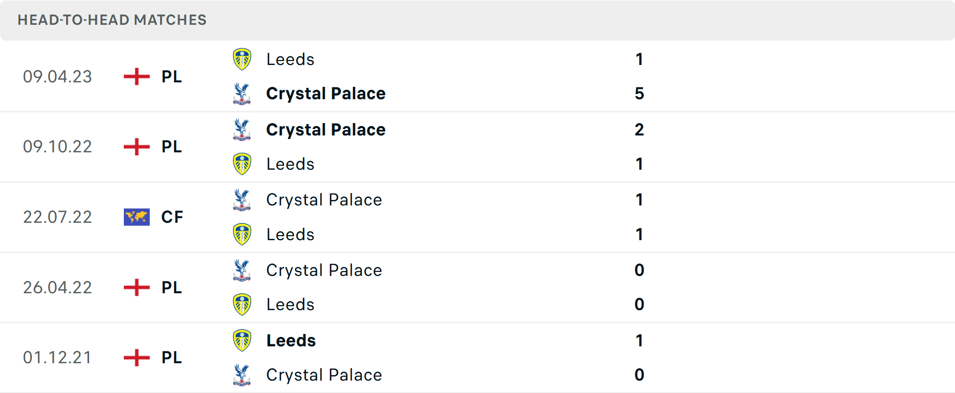 Tổng bàn thắng cả trận: 7/8 trận gần đây của Leeds vượt mốc tổng bàn thắng, tương tự là 5/7 trận mới nhất của Crystal Palace.