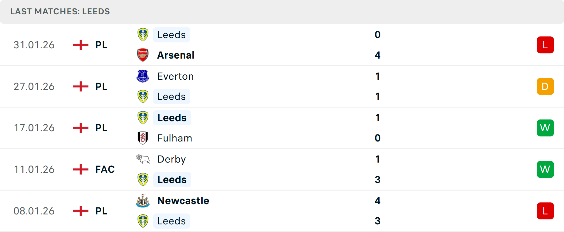 Cả hai hiện đang bằng điểm nhau (26 điểm) và cùng tạo ra khoảng cách 6 điểm an toàn so với nhóm xuống hạng. Leeds United, dưới sự dẫn dắt của Daniel Farke, đang cho thấy sự lỳ lợm khi chỉ để thua 2 trong 11 trận gần nhất trước khi sẩy chân trước Arsenal. Đặc biệt, Elland Road luôn là điểm tựa vững chắc nơi họ đã giành 5 chiến thắng từ đầu mùa. Dù vừa nhận thất bại nặng nề, nhưng khát khao đòi lại món nợ thua 1-3 ở lượt đi sẽ là động lực rất lớn cho "The Whites".
