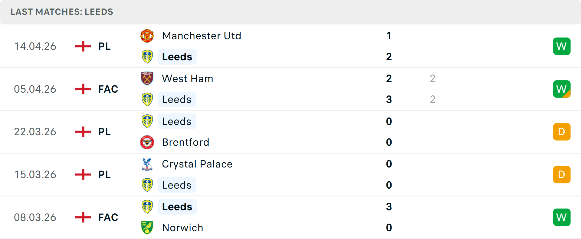 Tổng bàn thắng cả trận: 4/5 cuộc đối đầu trước đó giữa hai đội vượt mốc tổng bàn thắng, tương tự là 2 trận vừa qua của Leeds và 3 trận mới nhất của Wolves.