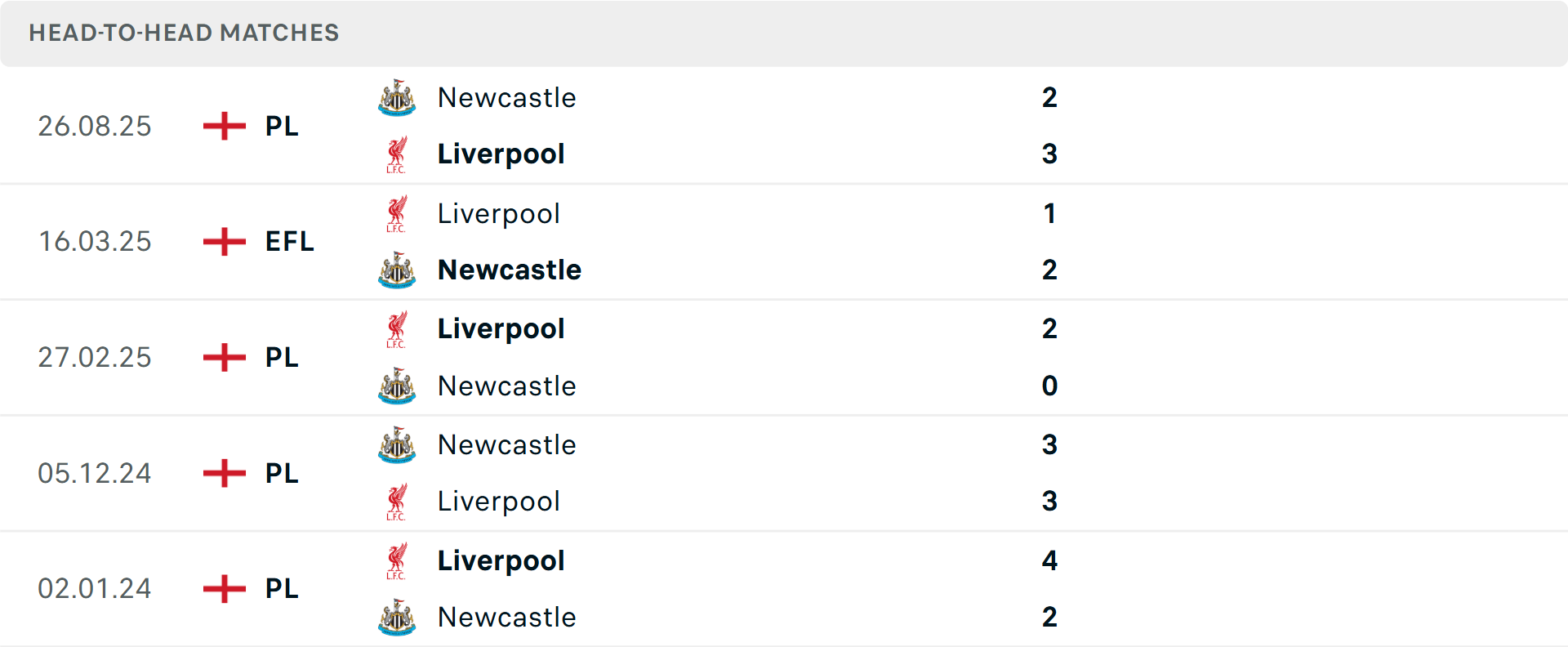Tổng bàn thắng cả trận: 4/5 cuộc đối đầu giữa hai đội vượt mốc tổng bàn thắng, tương tự là 2 trận vừa qua của Liverpool. Phía bên kia, Newcastle chỉ giữ sạch lưới 2/7 trận gần đây.