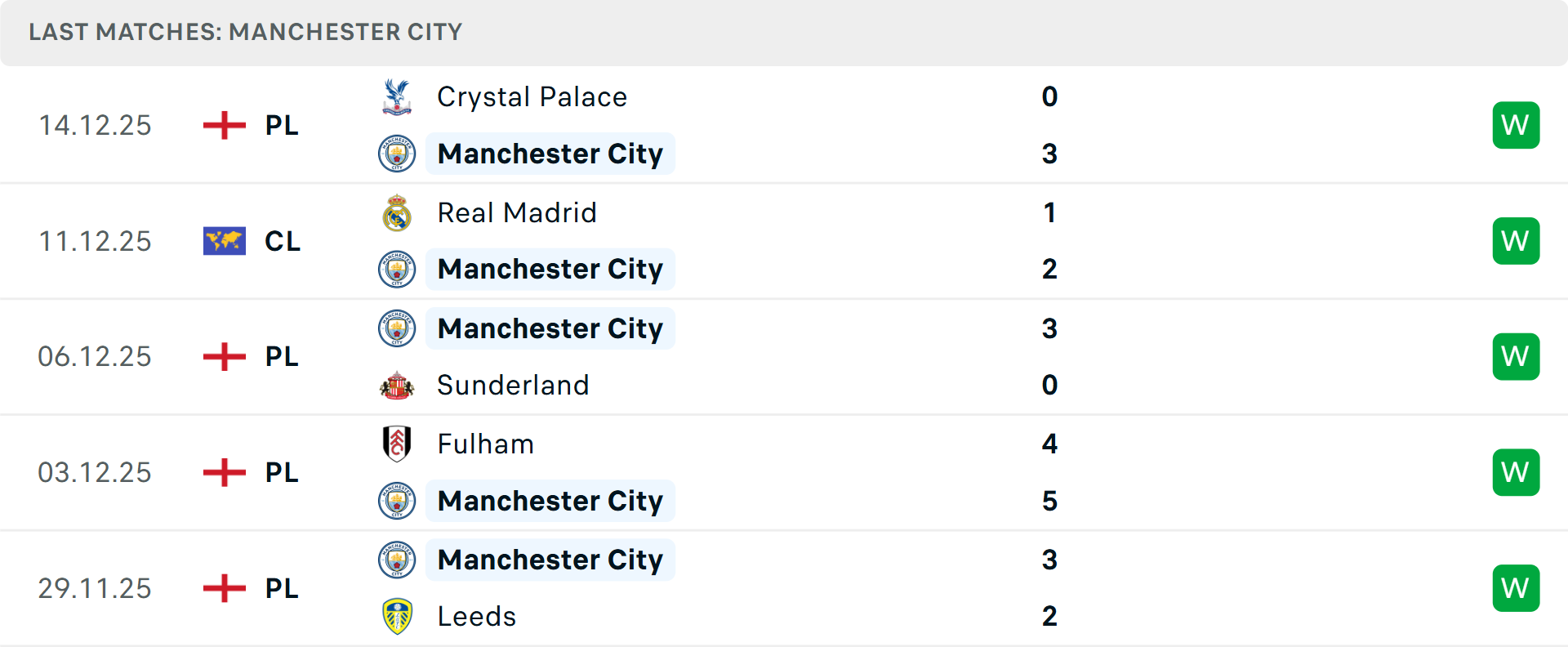 Man City đang có phong độ tuyệt vời, thắng 5 trận liên tiếp trên mọi đấu trường và thắng 9/10 trận sân nhà gần nhất. Dù trận thắng Crystal Palace 3-0 vừa qua chưa phản ánh hết thế trận, sự lạnh lùng của họ là điều đáng nể.