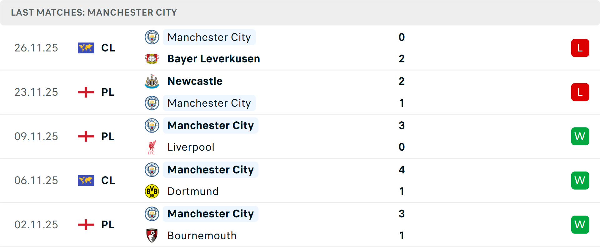 Man City đang tìm kiếm phản ứng mạnh mẽ sau hai thất bại liên tiếp (thua Newcastle ở Premier League và thua Leverkusen ở Champions League). Dù đang tạm rơi xuống thứ ba, đoàn quân của Pep Guardiola có thành tích đối đầu vượt trội trước Leeds, thắng cả 4 lần chạm trán gần nhất tại Premier League và ghi tổng cộng 16 bàn thắng. Đặc biệt, City đã thắng 23/25 trận gần nhất trước các đội thăng hạng (hòa 2). Họ đang hướng tới chuỗi 6 trận thắng sân nhà liên tiếp với cách biệt từ 2 bàn trở lên.