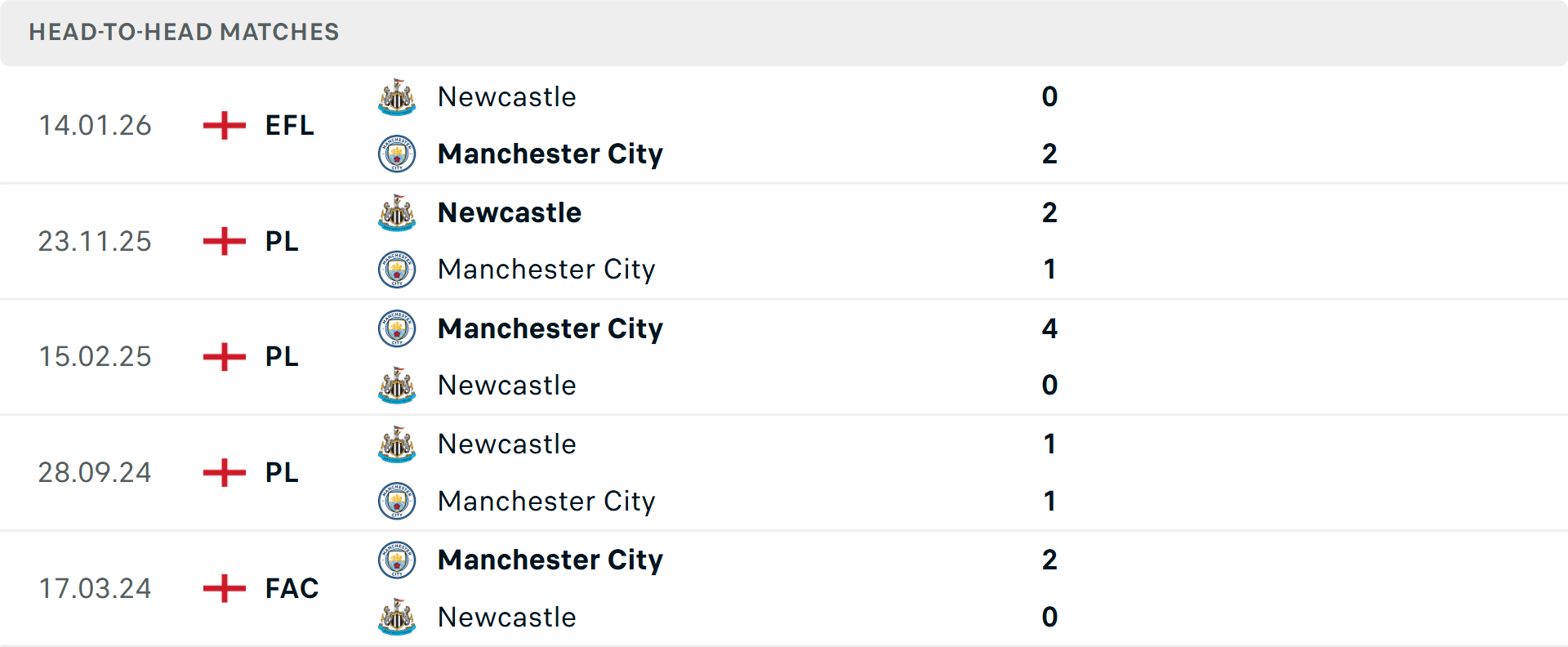 Tổng bàn thắng cả trận: Man City trải qua 3 trận liên tiếp đều ghi 2 bàn. Phía bên kia, Newcastle lọt lưới 7 bàn ở 3 trận gần đây.