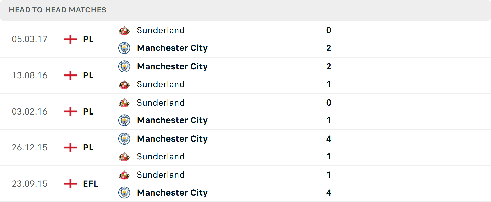 Dù vậy, Man City vẫn là một thế lực tại Etihad, nơi họ ghi được 19 bàn (cao nhất giải) và đang tìm kiếm chiến thắng thứ 7 liên tiếp. Lịch sử đối đầu hoàn toàn ủng hộ họ: thắng cả 7 lần gặp Sunderland gần nhất với tổng tỷ số 20-6.