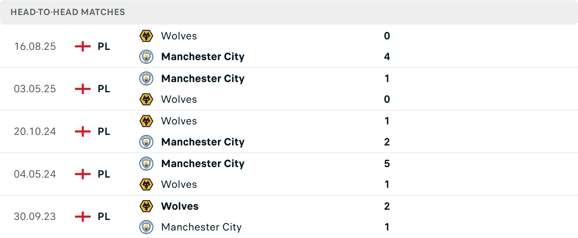 Tổng bàn thắng cả trận: 5/7 cuộc đối đầu mới nhất giữa hai đội không vượt mốc tổng bàn thắng, tương tự là 7/10 trận gần đây của Man City và 5/7 trận của Wolves.