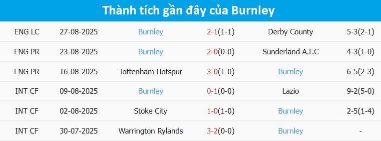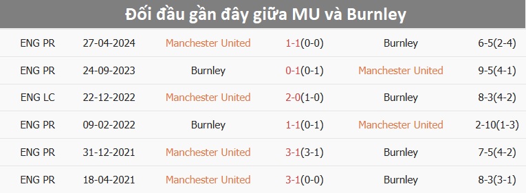 Tổng bàn thắng cả trận: MU trải qua 7 trận liên tiếp để lọt lưới. Phía bên kia, 2/3 trận gần đây của Burnley vượt mốc tổng bàn thắng.
