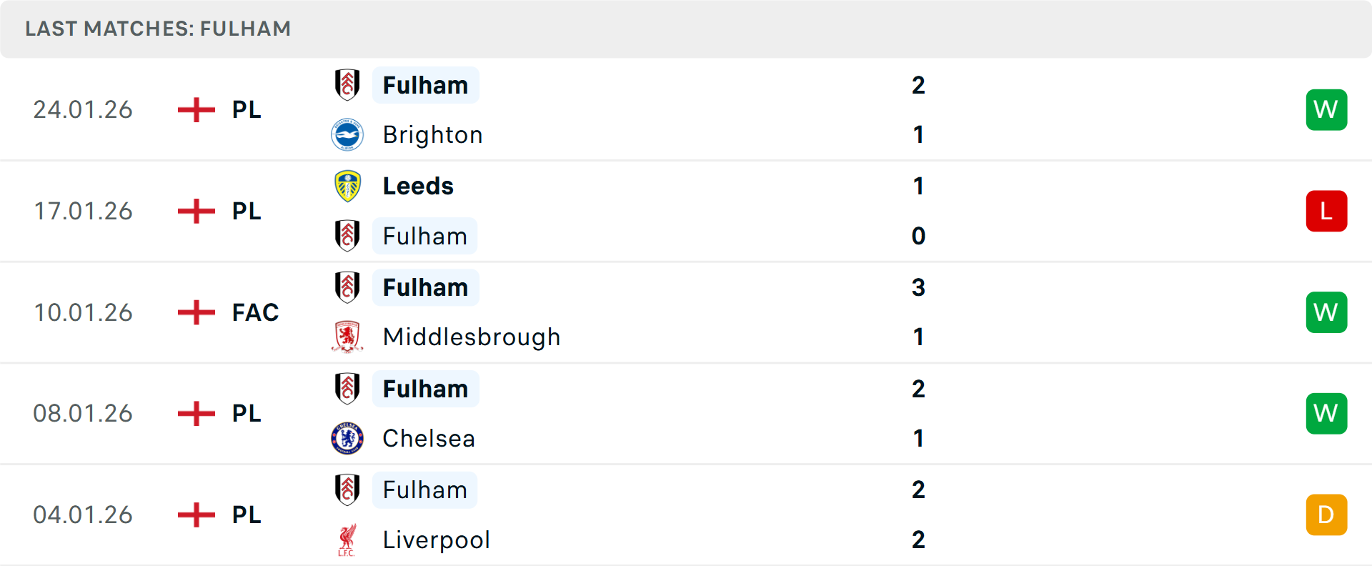Phía bên kia, Fulham cũng đang có phong độ khởi sắc với 5 chiến thắng trong 8 trận gần đây. Sự tỏa sáng của Harry Wilson giúp đại diện Tây London duy trì vị trí thứ 7 và nuôi hy vọng cạnh tranh vé dự cúp châu Âu. Dù Fulham từng cầm chân Man Utd ở lượt đi và có thành tích sân khách cải thiện, nhưng đối đầu với một Man Utd đang hừng hực khí thế của Carrick là thử thách rất lớn. Với lợi thế sân nhà và dàn sao đang vào phom, Quỷ đỏ được kỳ vọng sẽ giành trọn 3 điểm.