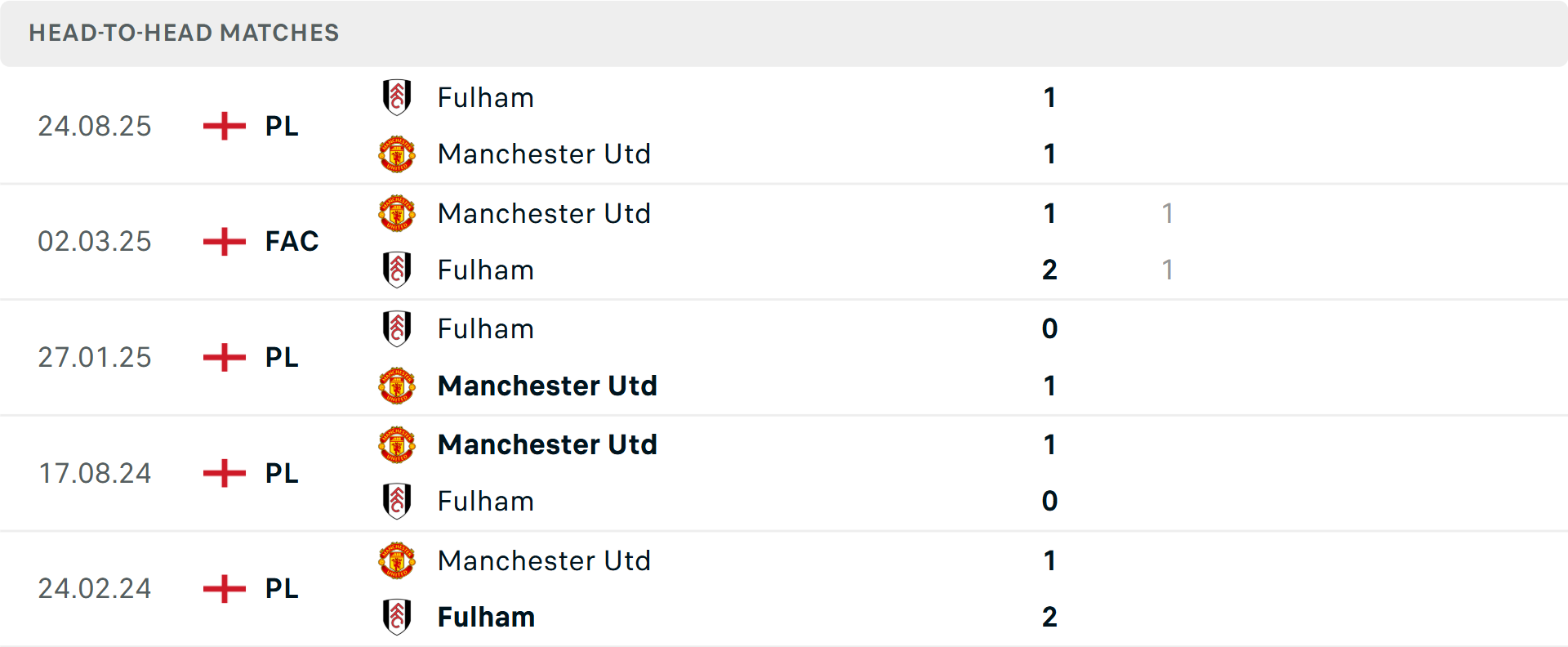 Tỷ lệ trận đấu: MU toàn thắng 2 trận vừa qua theo tỷ số châu Á. Về phần mình, Fulham thắng 8/10 trận gần đây, chỉ thua 1.