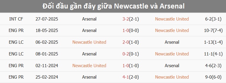 Tỷ lệ trận đấu: Arsenal thắng Newcastle cả 2 cuộc đối đầu trước đó theo tỷ số châu Á. Newcastle chỉ thắng 1/15 trận trở lại đây. Về phần mình, Arsenal thắng 5 và thua 3 trong 8 trận từ đầu mùa.