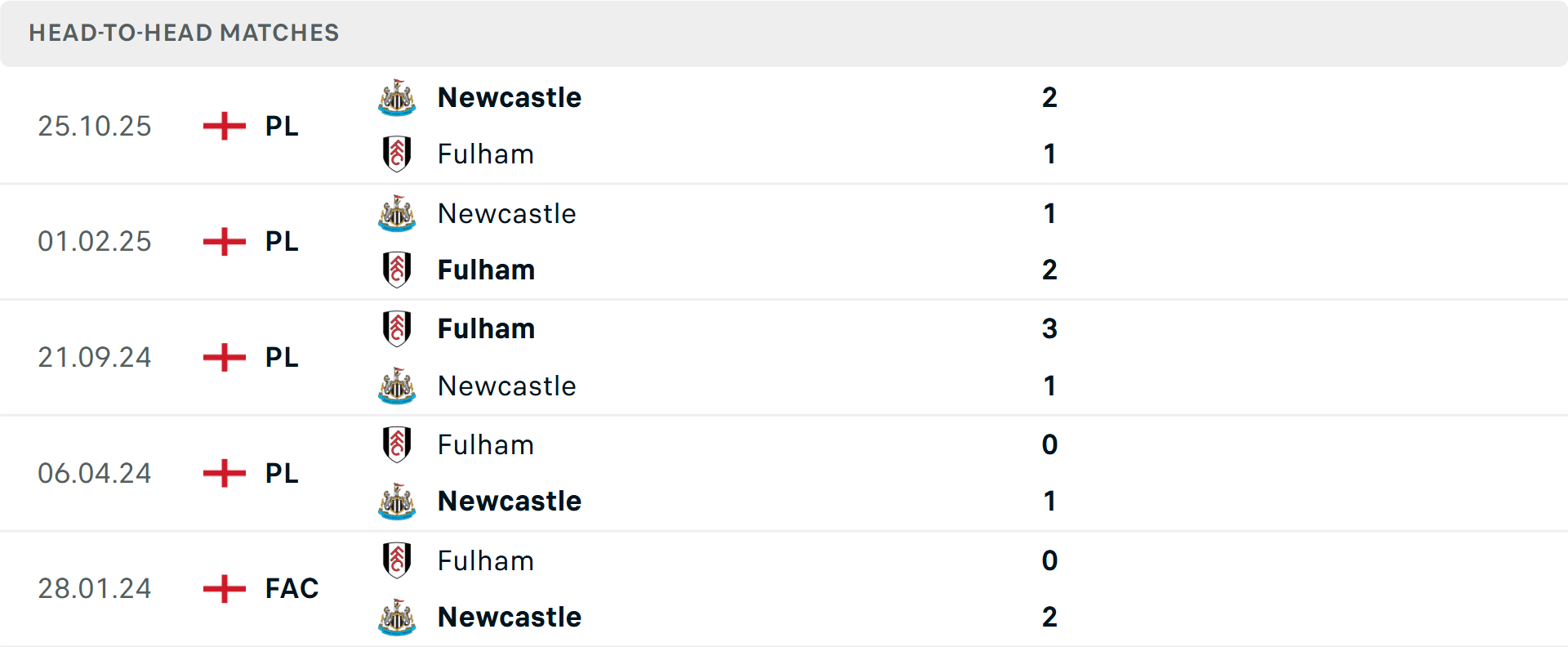 Tỷ lệ trận đấu: Newcastle trải qua 4 trận liên tiếp không thắng theo tỷ số châu Á, gồm thua 3. Phía bên kia, Fulham thắng 3/5 trận gần đây, chỉ thua 1.