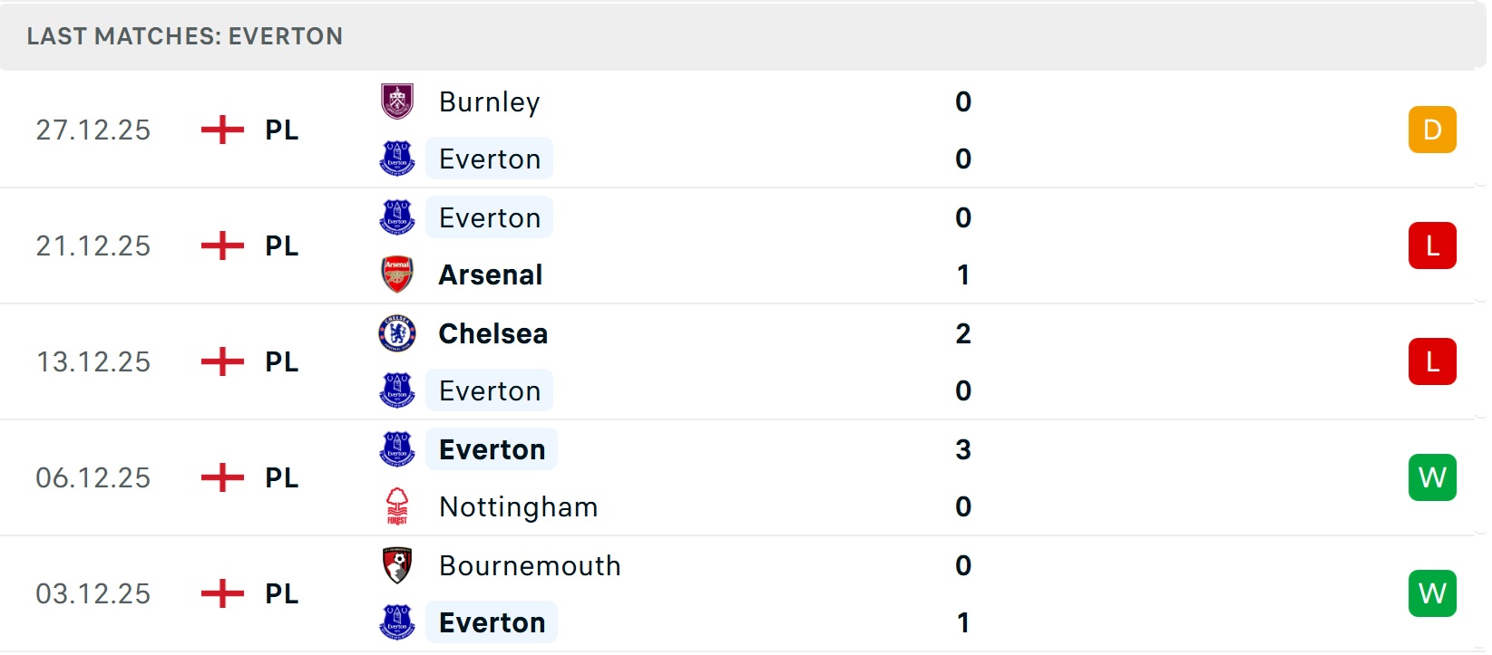 Tổng bàn thắng cả trận: 4/5 cuộc đối đầu trước đó giữa hai đội dưới mốc tổng bàn thắng. Điều tương tự cũng xảy ra ở 7/9 trận gần đây của Everton, đội không ghi bàn ở 2 trận mới nhất.