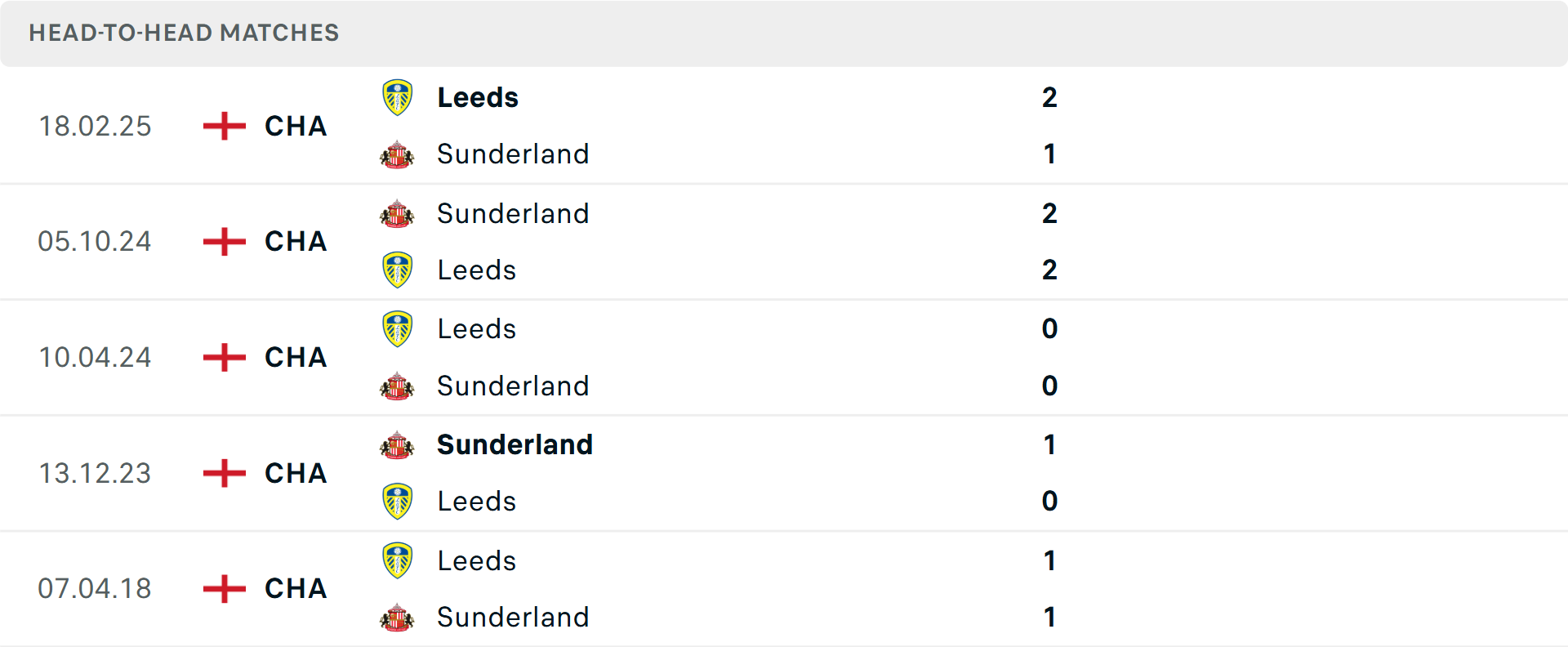 Tỷ lệ trận đấu: Sunderland thắng Leeds 4/5 cuộc đối đầu trước đó theo tỷ số châu Á. Sunderland cũng thắng 7/10 trận gần đây (hoà 1). Phía bên kia, Leeds trải qua 5 trận thắng liên tiếp.